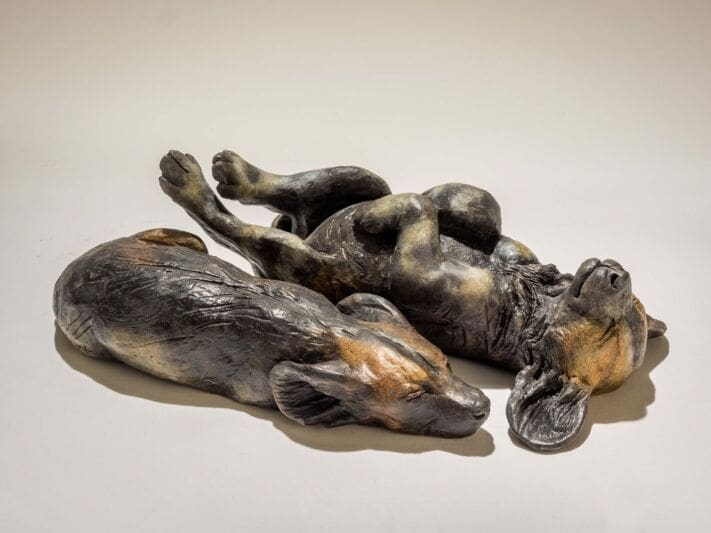 Most of Nick’s animal sculptures are Raku fired, giving a rich but natural looking crackle glaze. She aims to get under the skin of the animal, giving each animal sculpture its own personality. Many of her subjects are highly endangered and, in depicting them, she seeks to enlighten us to their beauty, humour and tenderness. She lives in Devon, in South West England, with her husband, twins and two dogs.
