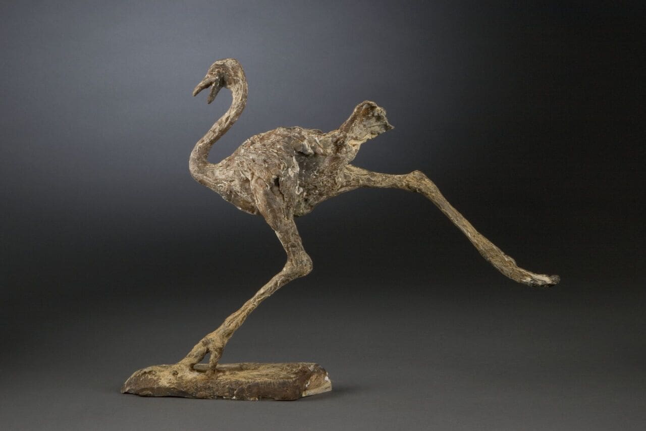 Ostrich (Bronze Fun Running Bird Indoor sculpture)