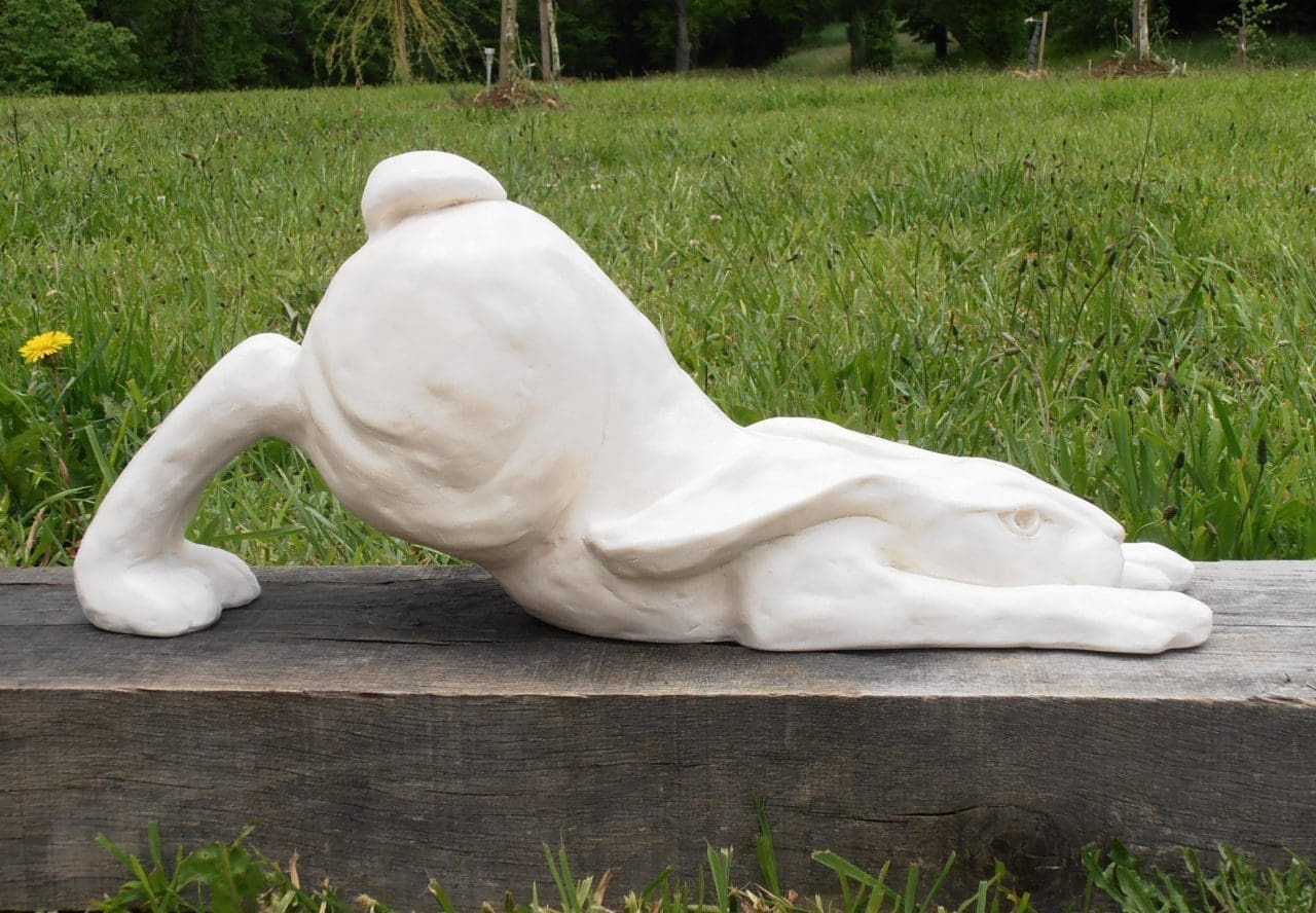 Hare (Carved Wood Wild Garden Animal sculpture)