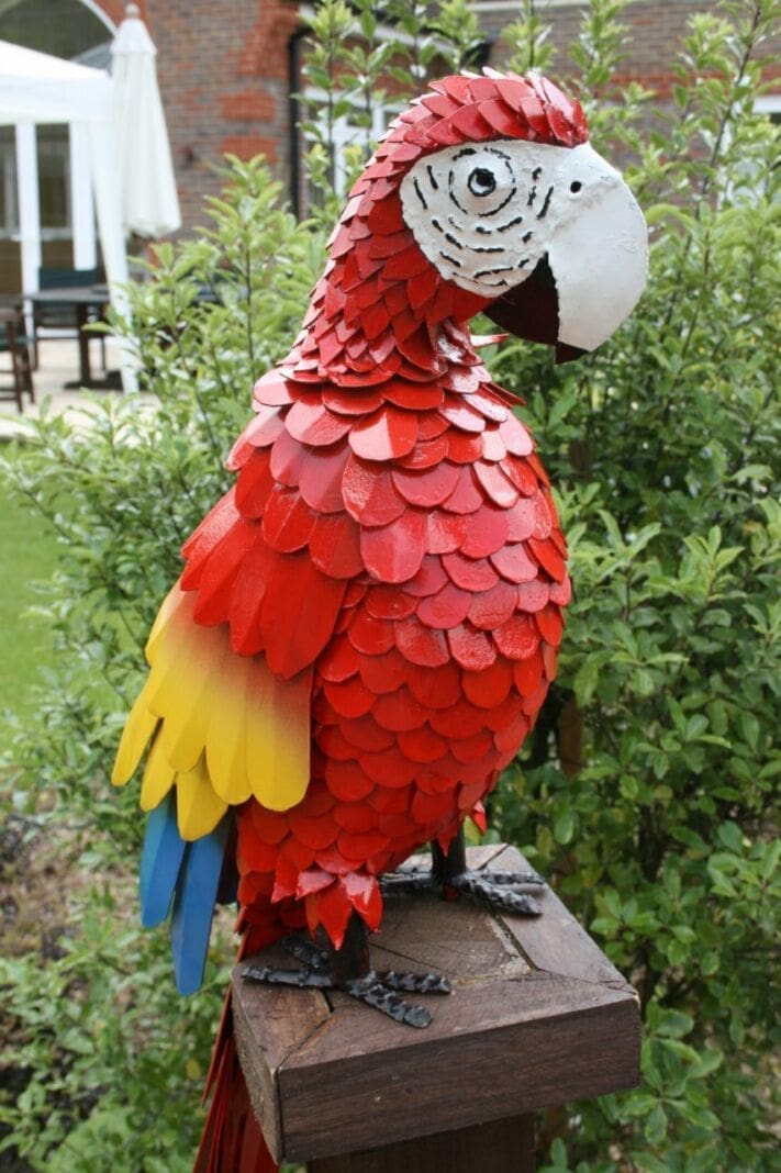 A very proud and slightly comical birdie. Every feather is individually hand-cut and welded into place.