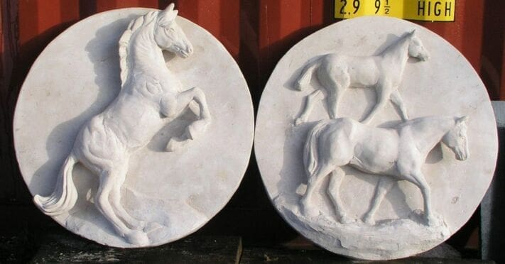 All the sculptures on the website are described by the artists themselves, stating the material they are made from and their dimensions. If they are stated to be suitable for outdoors, they have a guarantee of 10 years, subject to the effects of weathering, which will alter their colour and finish over the years unless you give them regular cleaning and maintenance.