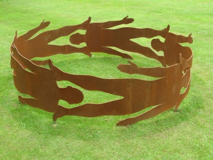 All the sculptures on the website are described by the artists themselves, stating the material they are made from and their dimensions. If they are stated to be suitable for outdoors, they have a guarantee of 10 years, subject to the effects of weathering, which will alter their colour and finish over the years unless you give them regular cleaning and maintenance.