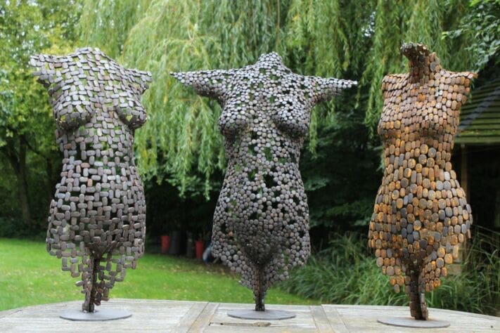 All the sculptures on the website are described by the artists themselves, stating the material they are made from and their dimensions. If they are stated to be suitable for outdoors, they have a guarantee of 10 years, subject to the effects of weathering, which will alter their colour and finish over the years unless you give them regular cleaning and maintenance.