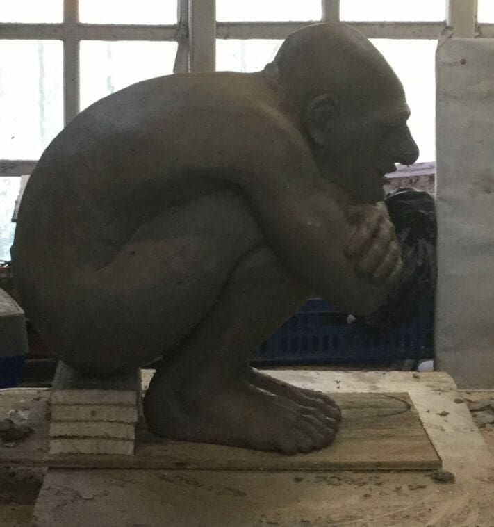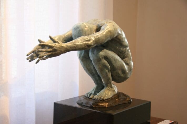 Little Small Bronze Nude Naked Man Sculpture. For Sale For Indoors Inside Interior Display By the British Sculptor Simon Mahoney.