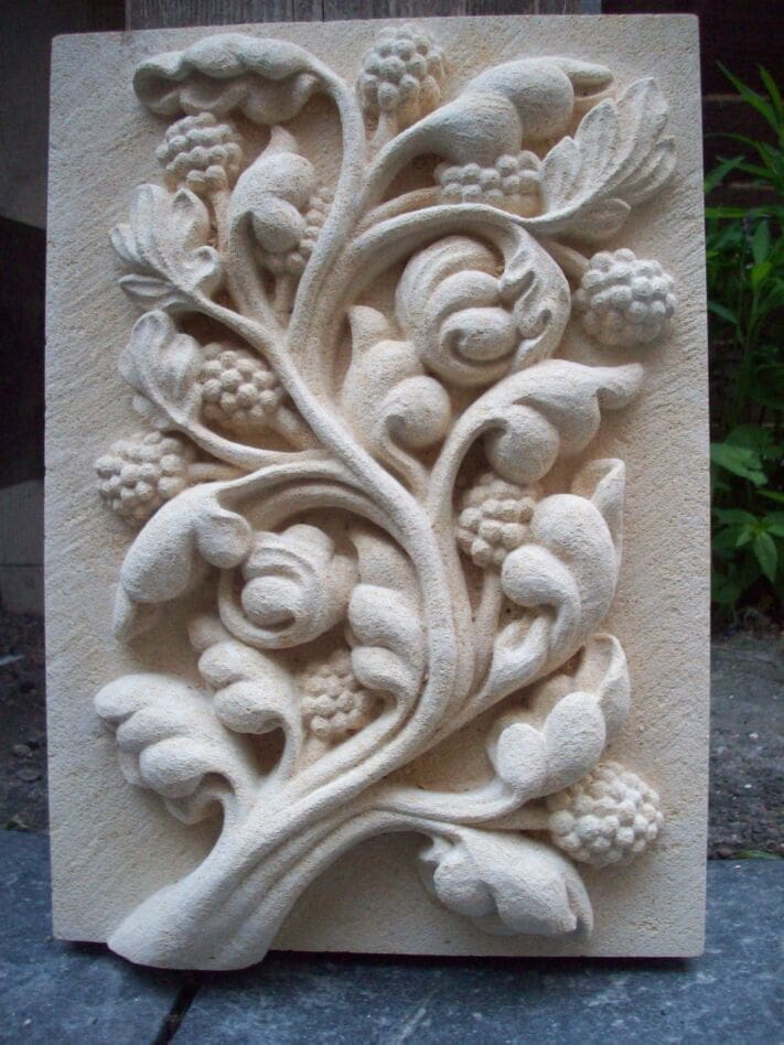 Carved Stone Oakleaves And Acorns Sculpture For Use As A Candle Stick For Indoors Inside your house traditionally carved by the Enviably Skilled Yuko Marchant. Another one of her Unique Masterpieces.