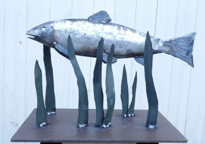 “Made originally as a tutorial for a friend on a welding forum who wants to have a go. Mounted on an 8 foot pole but removable for transport. Available for indoor or outdoor display”.