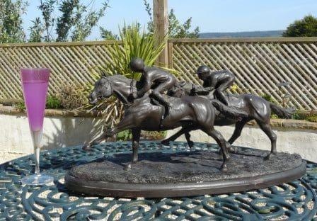 All the sculptures on the website are described by the artists themselves, stating the material they are made from and their dimensions. If they are stated to be suitable for outdoors, they have a guarantee of 10 years, subject to the effects of weathering, which will alter their colour and finish over the years unless you give them regular cleaning and maintenance.